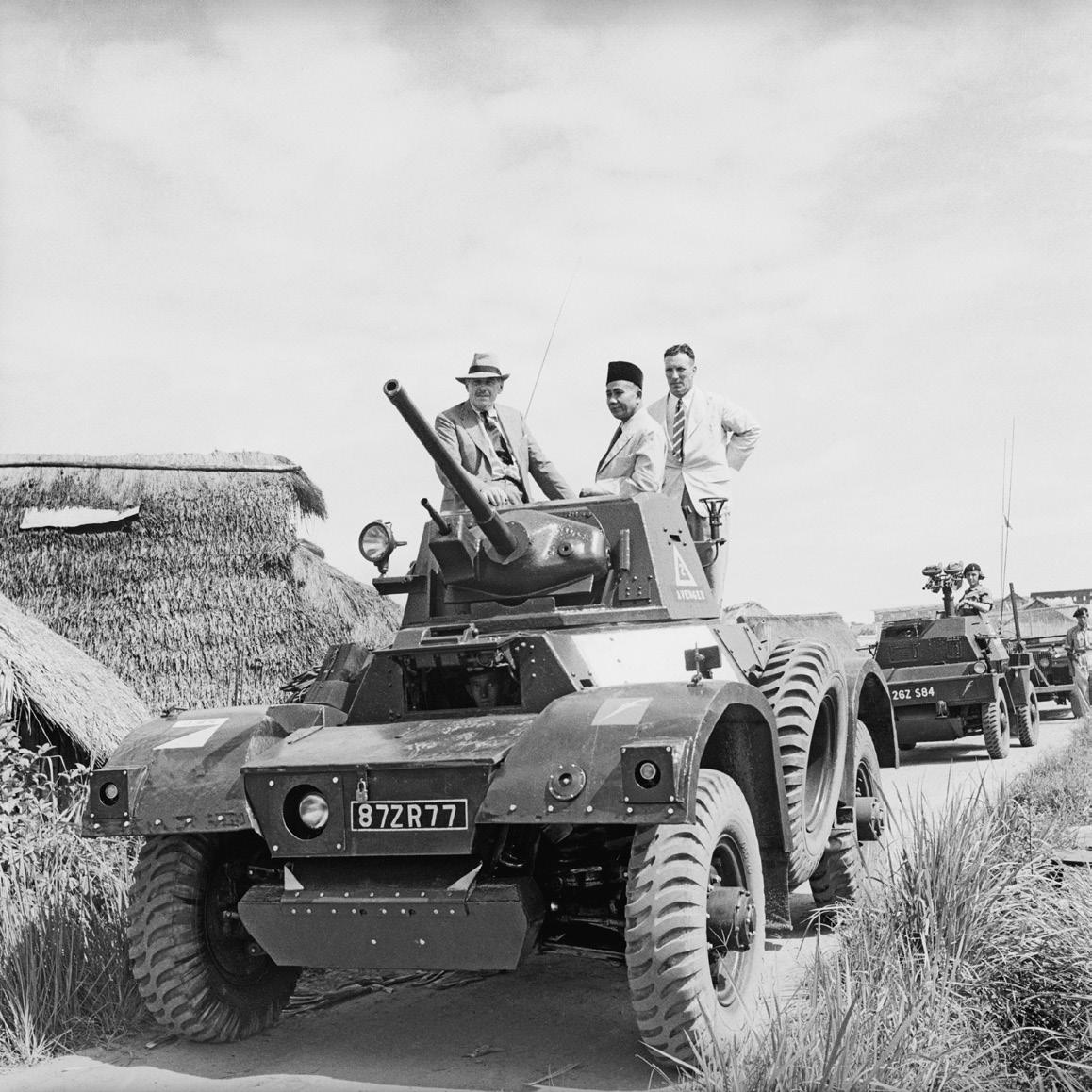 Figure I.1 Colonial secretary Oliver Lyttelton (left) rides a tank through a resettlement area in Johore, Malaya, 1951. PA Images.