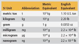 Table 1-2 SI Mass Units as Related to the Gram, with English Equivalents