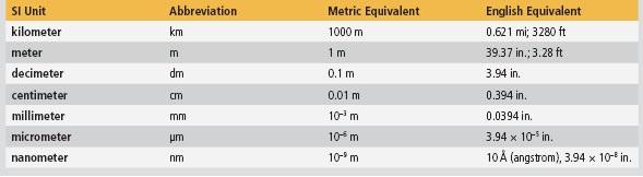 Table 1-1 shows various SI “meter” units as they relate to the English equivalents. References [1] and [2] at the end of the chapter contain more conversions among length (and other) units.