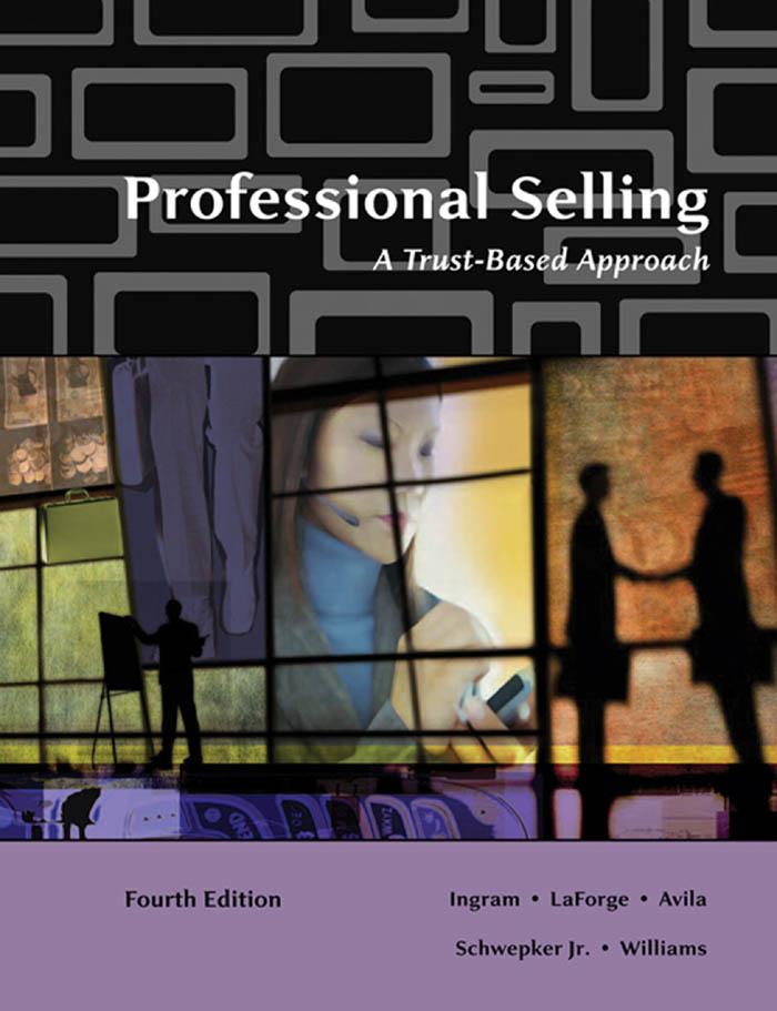 Weareexcitedaboutthefourtheditionof ProfessionalSelling:ATrust-Based Approach.Wehaveusedthetextsuccessfullyinourprofessionalsellingclasses.Studentsfindthebooktobereadableandinteresting,likethemanyexamplesand active-learningexercises,andmanyindicate theyaregoingtokeepthebookto useintheircareer.Moststudentscompletethecoursewithamorefavorableattitude towardprofessionalsellingandmanydecidetopursuesalesjobsandcareers.The positiveimpactthat ProfessionalSelling:ATrust-BasedApproach hashadonstudents overtheyearsisasourceofimmensesatisfactionforus.