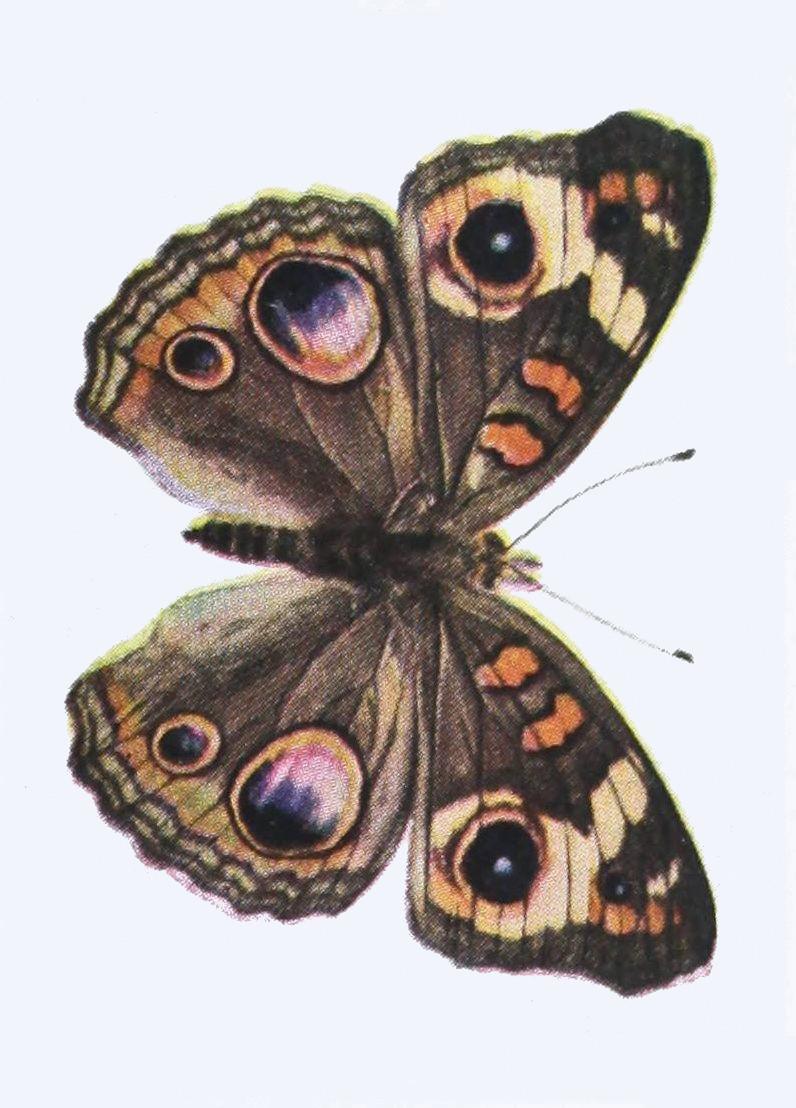 The butterflies of this are like those of the last genus in the structure of their wings, except that the hind wings are not angulate, and below the hind wings are generally marked with eye-like spots. Egg ovoid, closely resembling that of Vanessa. Larva like that of Vanessa, but spines relatively not so large and not so distinctly branching. Form of chrysalis very like that of Vanessa. The genus includes comparatively few species, but most have a very wide