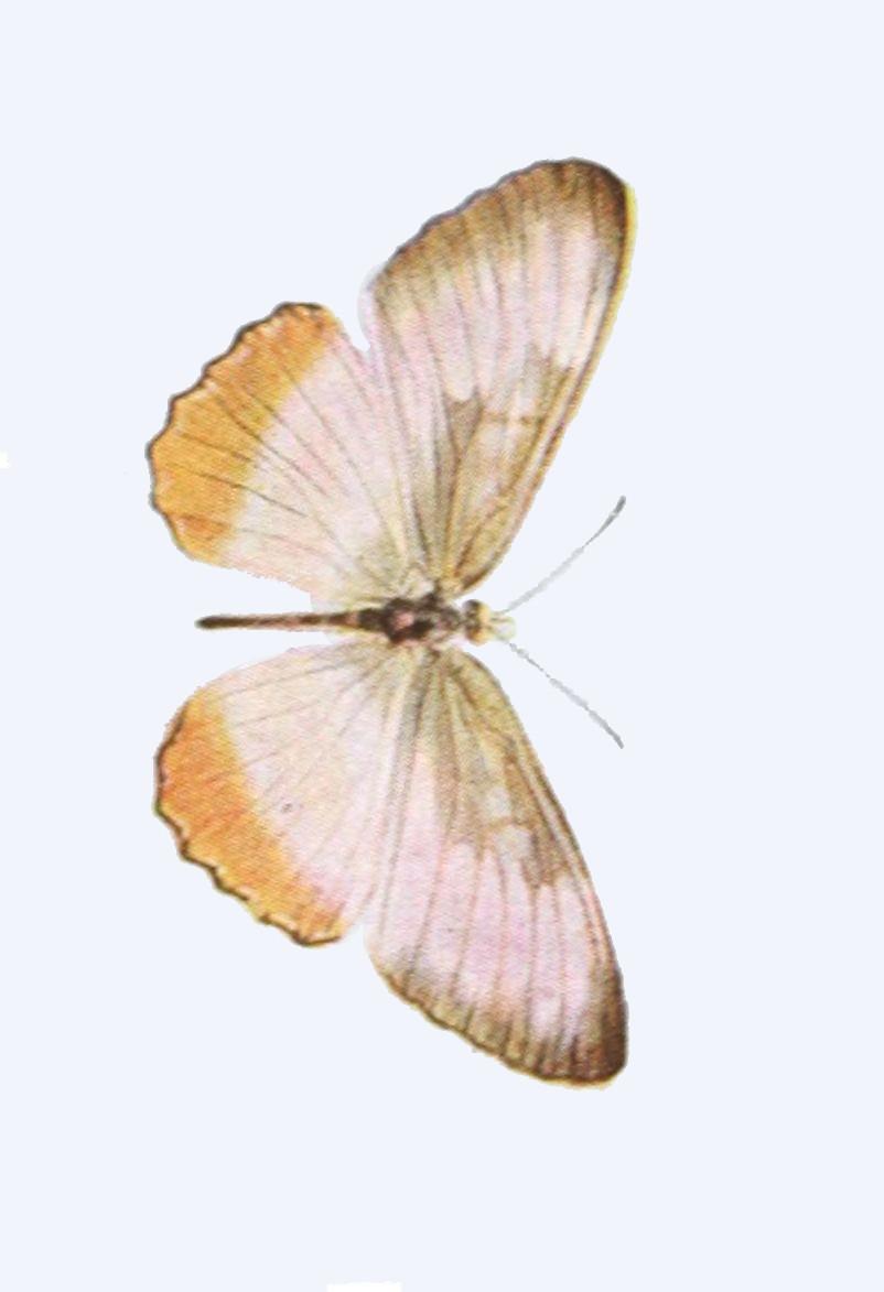 Closely resembling the preceding, but fore wings not as curved on the costal margin, and relatively longer and narrower; the pale markings more whitish, not so red, and more clearly defined. On the under side, especially in the female, the markings are heavier than in P . batesi. Expanse 1.15-1.40 inch.