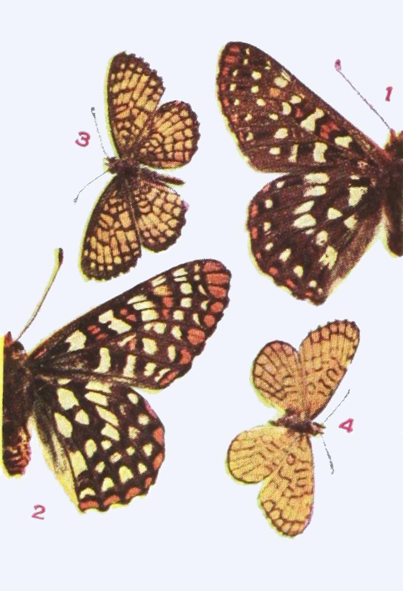 (4) Melitæa harrisi Scudder, Plate XXI, Fig. 1, ♀, underside (Harris’ Checker-spot).