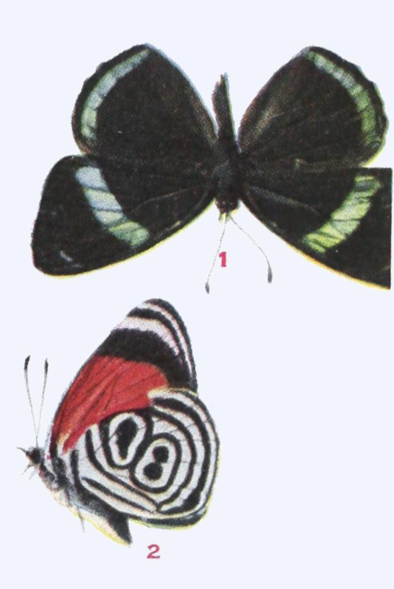 (1) Callicore clymena Hübner, Plate XL, Fig. 1, ♂, upperside; Fig. 2, ♀, underside (The Leopard-spot).