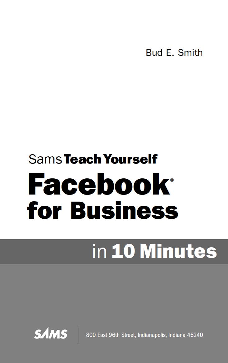 Sams teach yourself Facebook for business in 10 minutes / Bud E. Smith. p. cm.