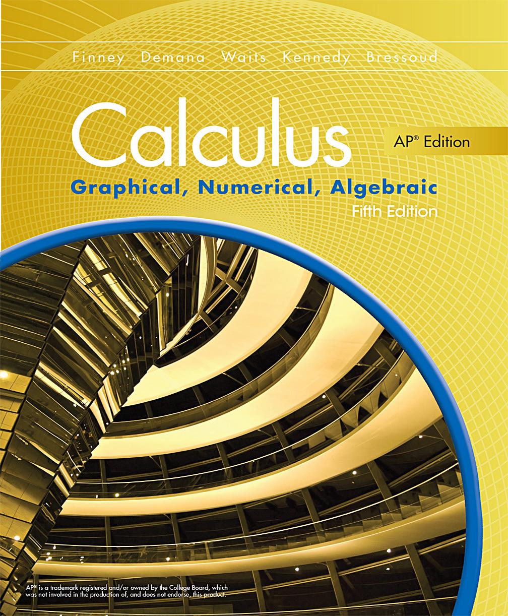 The fifth edition of Calculus: Graphical, Numerical, Algebraic, AP* Edition, by Finney, Demana, Waits, Kennedy, and Bressoud completely supports the content, philosophy, and goals of the Advanced Placement (AP*) Calculus courses (AB and BC).