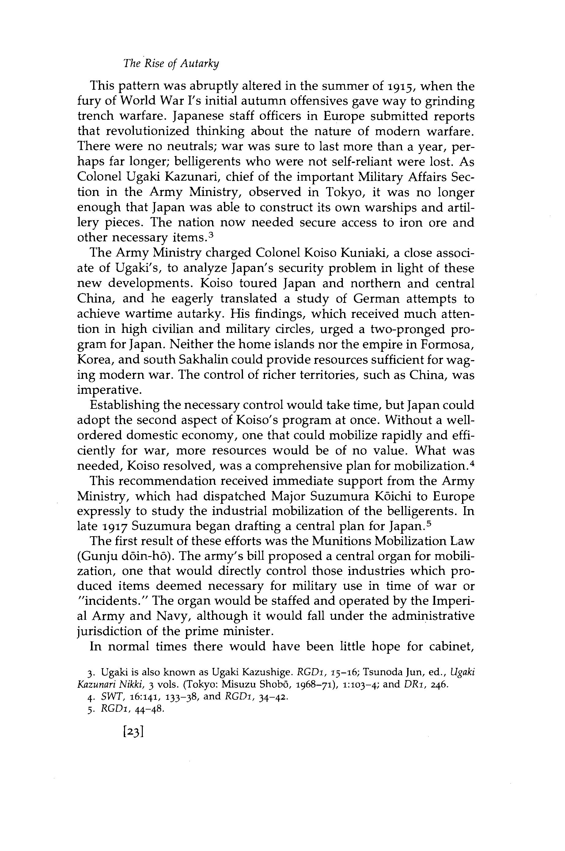 3. Ugaki is also known as Ugaki Kazushige. ReDl, 15-16; Tsunoda Jun, ed., Ugaki Kazunari Nikki, 3 vols. (Tokyo: Misuzu Shobo, 1968-71), 1:103-4; and DRl, 246.