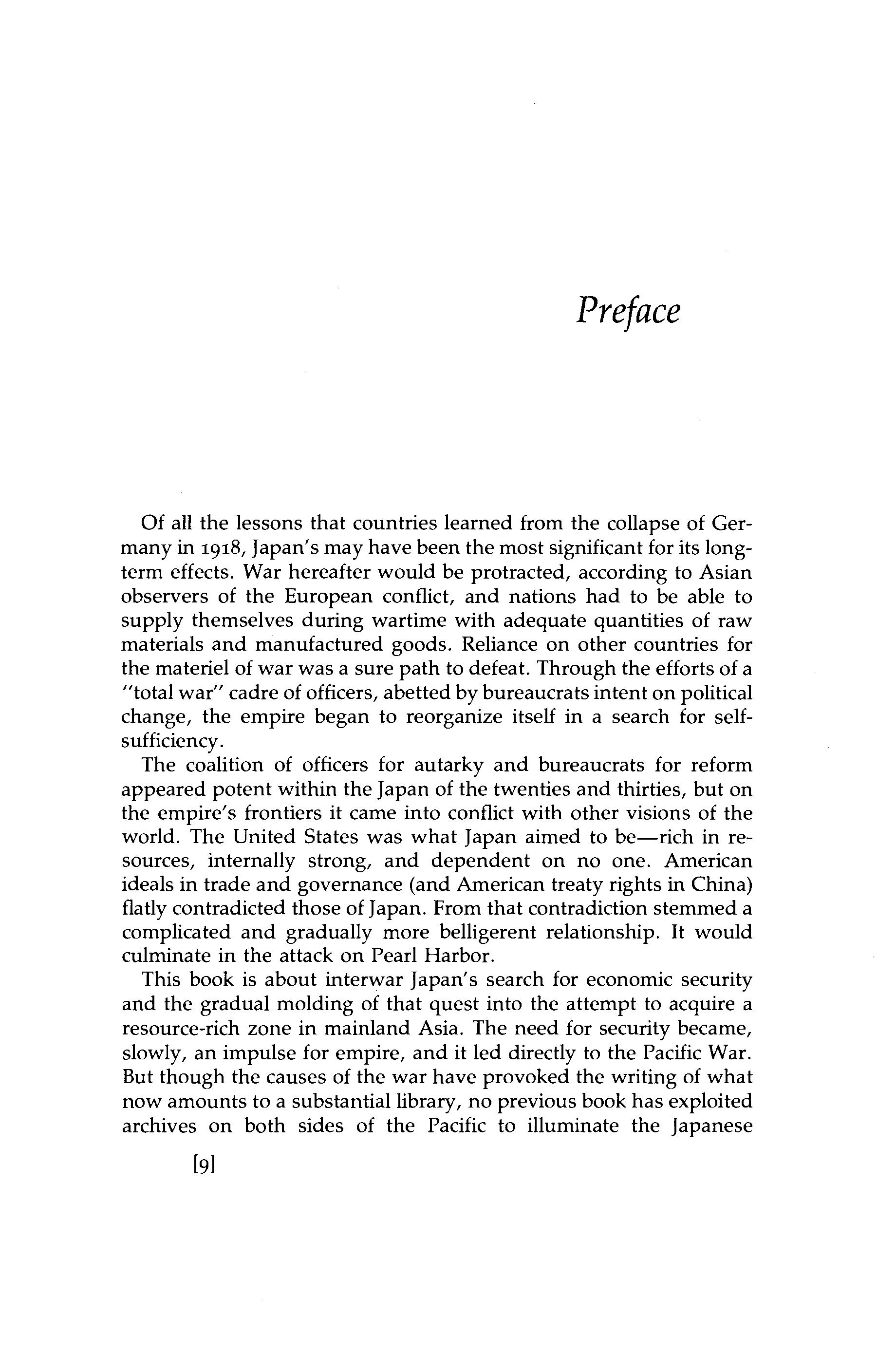 quest for economic security. It is in the details of that developing quest, and the long debates it provoked in Tokyo and with Washington, that I hope to contribute something new to understandings of the coming of war.