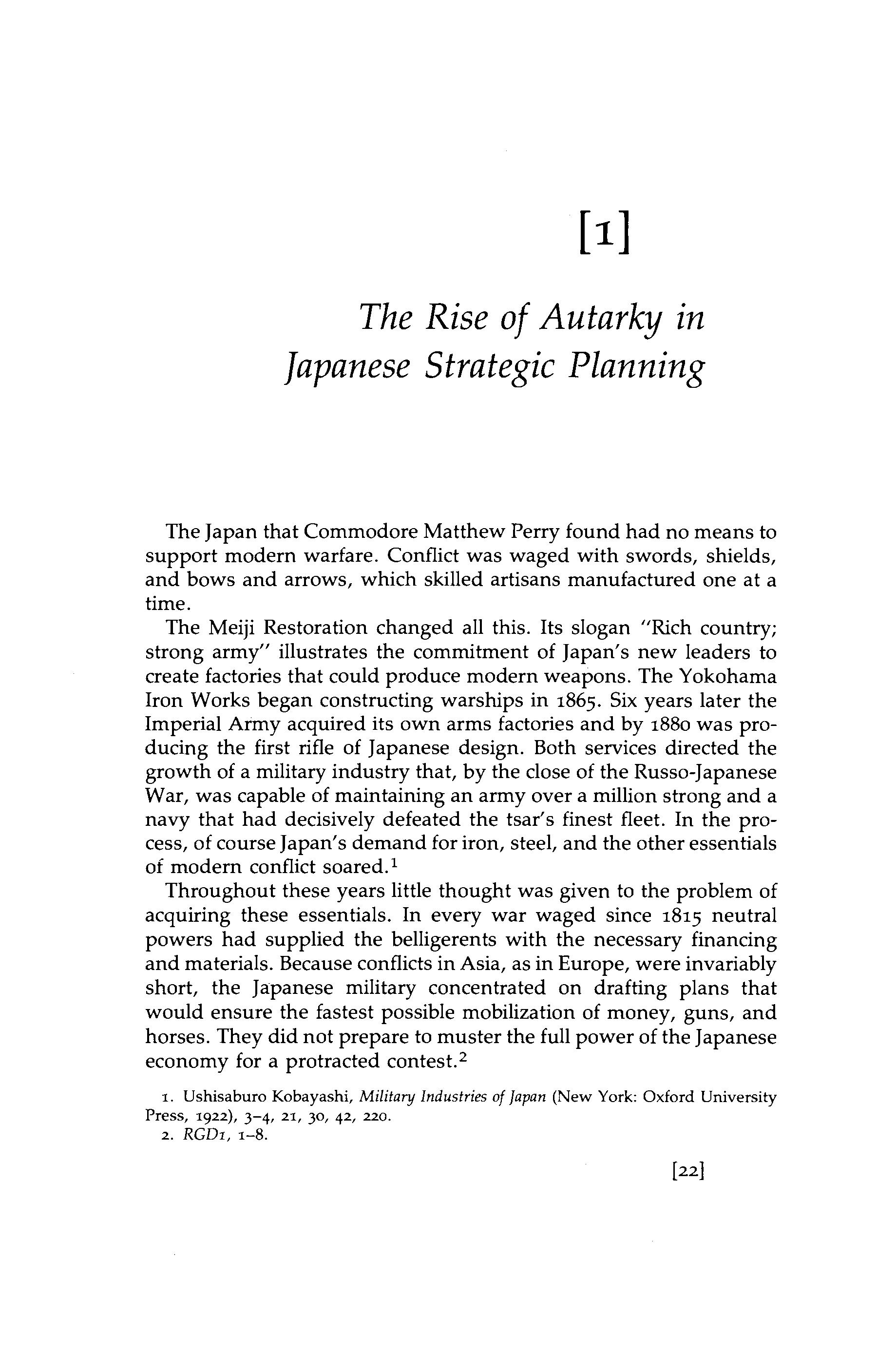 1. Ushisaburo Kobayashi, Military Industries of Japan (New York: Oxford University Press, 1922), 3-4, 21, 30, 42, 220.