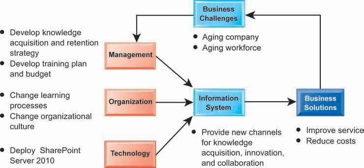 A diagram accompanying each chapter-opening case graphically illustrates how management, organization, and technology elements work together to create an information system solution to the business challenges discussed in the case.