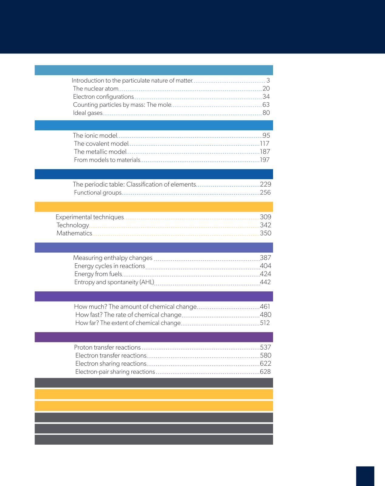 Parts of the book have a coloured bar on the edge of the page or next to a question This indicates that the material is for students studying at DP Chemistry Higher Level AHL means “additional higher level”