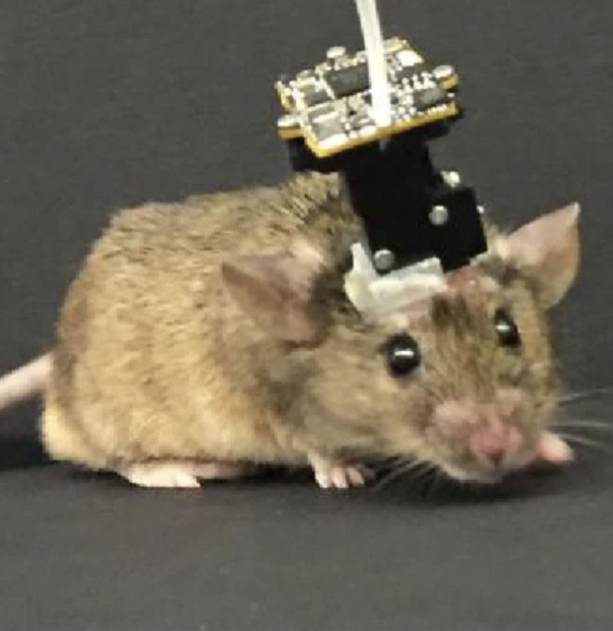 Figure 1.1 Recording device screwed into the skull of a mouse.