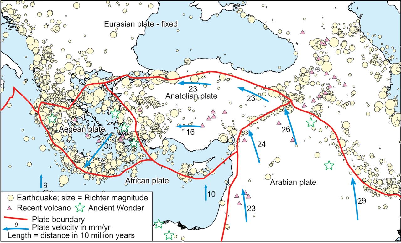 building occur more frequently along plate boundaries. Four or five of the Wonders were built close to these places.