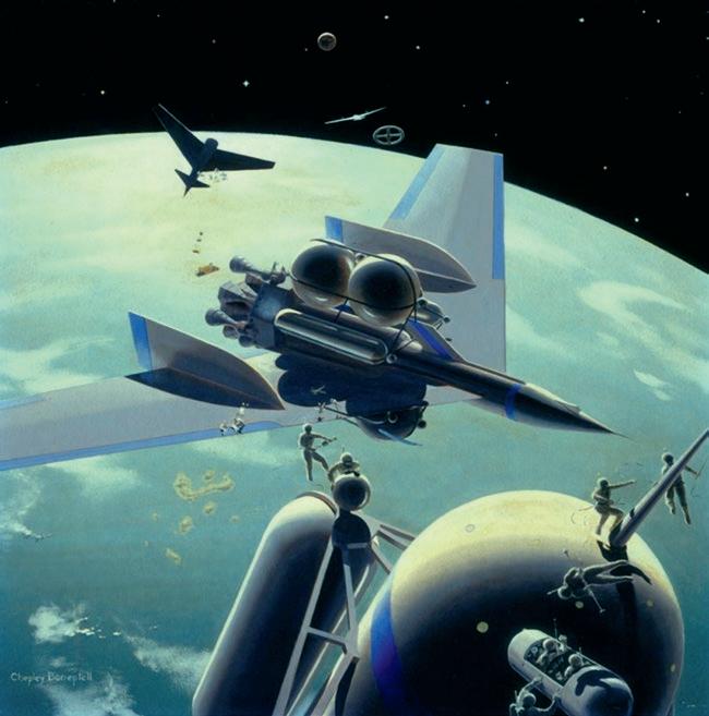 FIGURE I.2 Chesley Bonestell, Assembling the Ships for the Mars Expedition , 1956.