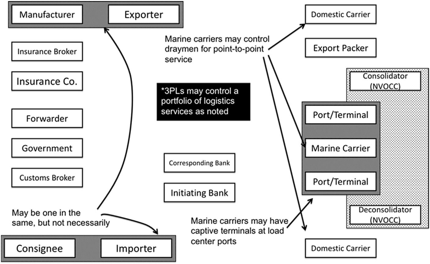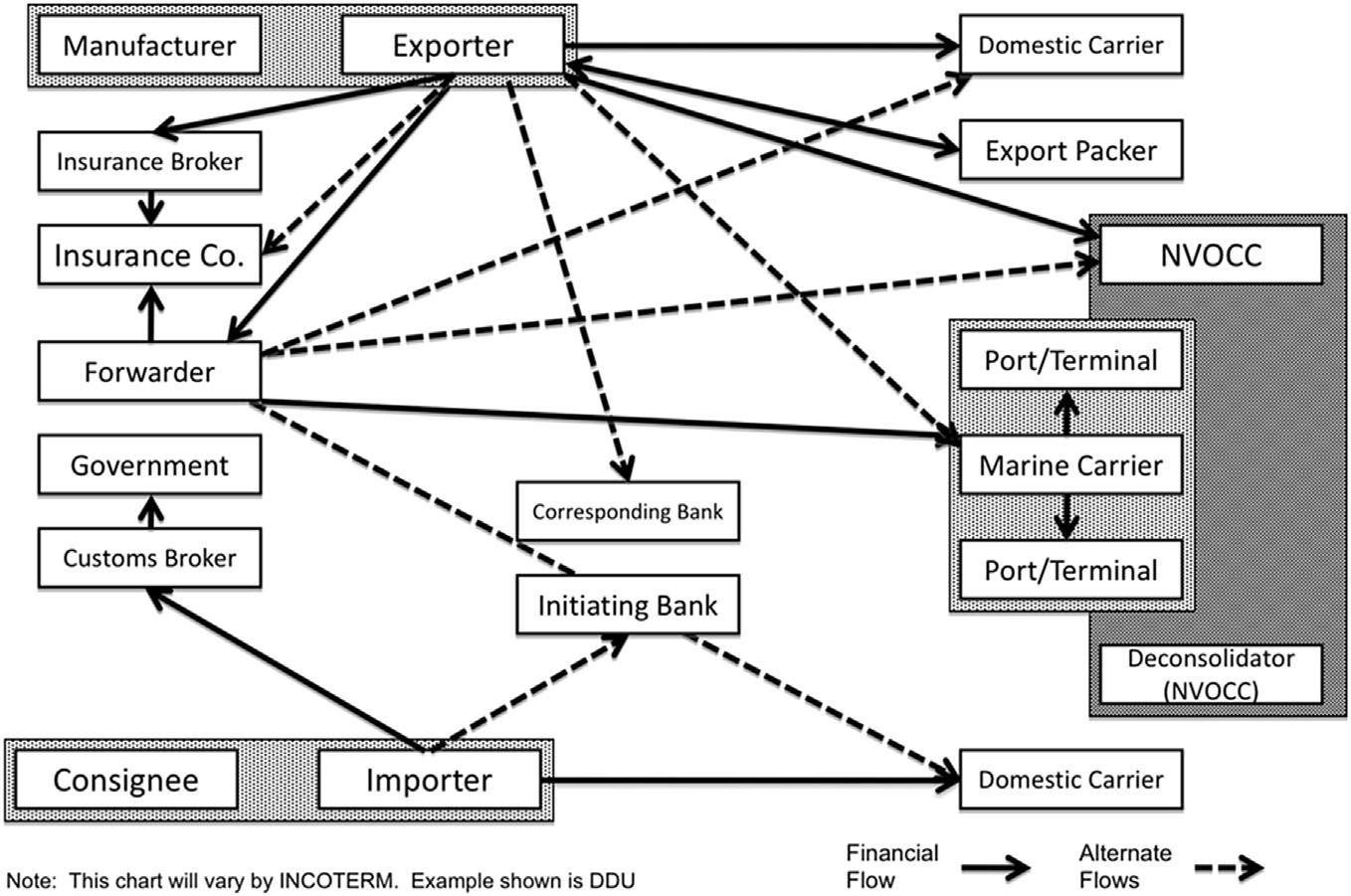 containsnumerousuniquecomponentsintendedtoprotecttheinterestsofsellers,buyers, exporters,importers,governments,shipowners,landandseatransportationservice providers,andfinancialinstitutions.Moreover,therearealternativecombinationsofthese entitiesdependingupon:(1)theinternationalcommercialtermsagreedupon,2 (2)the locationofthesellerandexporter,(3)therelationshipbetweenbuyerandseller,(4) particularcapabilitiesorexpertiseoftheimporterandtheexporter,and(5)thenatureof thegoodsthemselves.