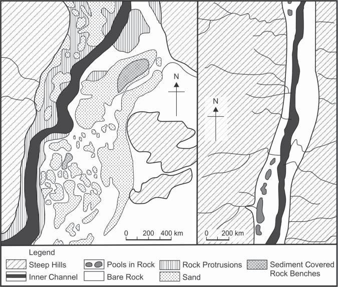 Figure2.3 Diagrammaticsketchesofcross-sectionsoftheMekongRiverinrock,LaoPDR. Source:Gupta2004.