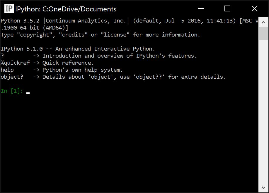 Figure1.1:IPythonrunninginthestandardWindowsconsole(cmd.exe).