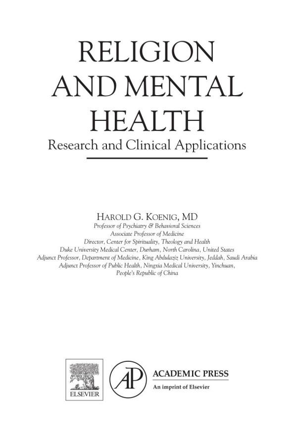 Religion and Mental Health, Research and Clinical Applications Harold G. Koenig