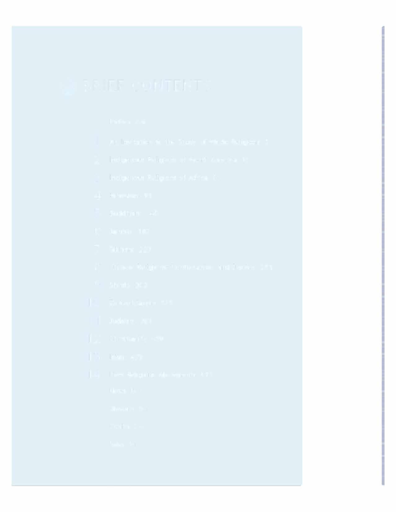 Because the concepts and contexts of the world'sreligions are immeasurably complex, we have worked co present a clear and accessible introductory text. Our cone throughout, while deeply informed by scholarship, is both accessible and appropriate for a widerange of undergraduate students.Consistentchapter structure also helpsstudents co focus on content inasmuch as they do not have co renavigace each chapter anew. With the exception ofChapters land 14, every chapter in thebookincludesthree core modules: the teachings of thereligion, the historyof thereligion, and the religion as a way of life. This modular and predictable structure is also highly flexible, allowing