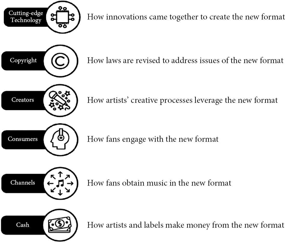 Format changes in recorded music are the best lens through which to view the evolution of the music industry; that’s because changes in formats have pervasive effects on the rest of the industry. Every time the format changes, the foundations of the music business shake. Nikki Sixx, cofounder and primary songwriter of the band Mötley Crüe, said, “Formats are going to change because this is what the people want. It’s not what the labels want.”ii