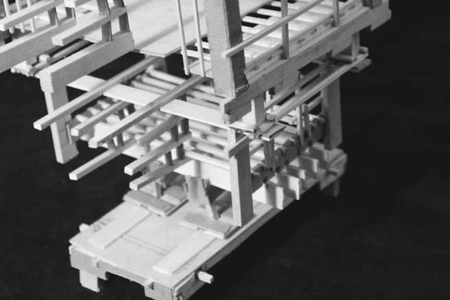 Figure 1.4. Additive making can be a strategy for assembly. Crafting intricate joints between many elements can provide opportunities for the design of the spaces they contain. It might be a way of affecting the space by filter light or providing access. It might also be a way of communicating relationships between parts through physical connection. Student: dan moJSa—CritiC: reagan k ing inStitution: mary Wood univerSity