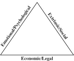 There are three sets of factors, or interests, at work in most conflicts These interests can be thought of as the three “Es”: economic, emotional, and extrinsic. They form the three sides of the negotiation triangle, which represent the three sets of interests that must be addressed to reach a satisfactory settlement of a dispute