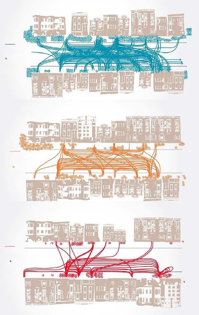 While there may be many reasons, I would like to offer these over others—this book uncovers, articulates and perhaps most importantly presents in graphic form rigorous research into the conflict playing out in our streets between traffic and people—a power struggle that was felt by many, but until the first edition of Livable Streets, was not fully understood, let alone clearly imagined or pictured. In short, it was the first to use scientific methods to graphically illustrate the invisible harms traffic forced upon people and their communities. Up until then, people likely knew this intuitively, but had not yet fully understood the extent of both the cognitive and community impacts to their environment. Thus, the enduring effectiveness of Livable Streets is conveyed powerfully in figures in Chapters 1 and 2,b where he looked at three streets, similar in all respects (context, sociodemographics), but with varying volumes of traffic. He found that people on the light traffic street had three times as many friends and twice as many acquaintances, illustrating how a livable street can knit a community together, while heavy traffic can rip it apart.