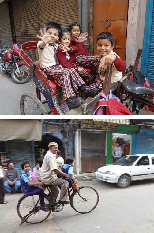 The morning journey to school in Old Delhi, India. Although there were young children walking, many of this age were chauffeured one way or another.