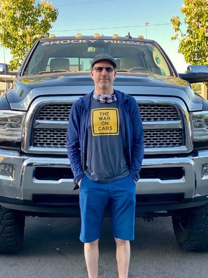 Matt and Elliott Elmes (on scooter) demonstrating the power imbalance between people and vehicles.