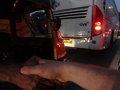 Every bit of available space is used in places like Mumbai, where a handshake between vehicles waiting at a stoplight is easy.