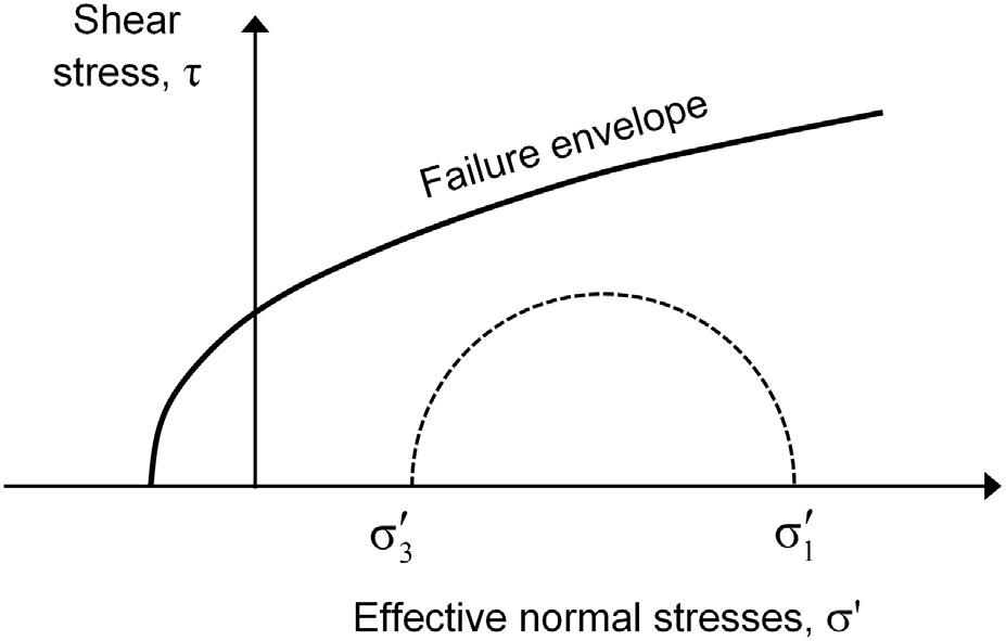 Apartfromtensilefailure,arockcanfailbyshearfailure.Thishappens whentheshearstressexceedsacertainlimitoncertainfavorablyoriented planes(failureplanes).Thislimit, smax,dependsontheeffectivenormalstress s0 n actingonthefailureplane,theconceptknownasMohr’shypothesis [1]: