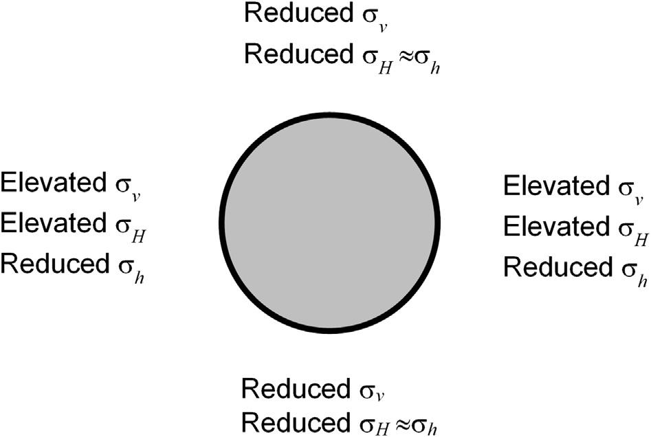 complex:horizontalstressesinthoseareasbecomeanisotropic,evenifthe far-fieldhorizontalstressesareisotropic.Inaddition,principalstressesmaybe rotatedinthoseareas,withtheverticaldirectionnotbeingaprincipaldirection anymore [5].Thesestresschangeshaveadetrimentaleffectonborehole stability.