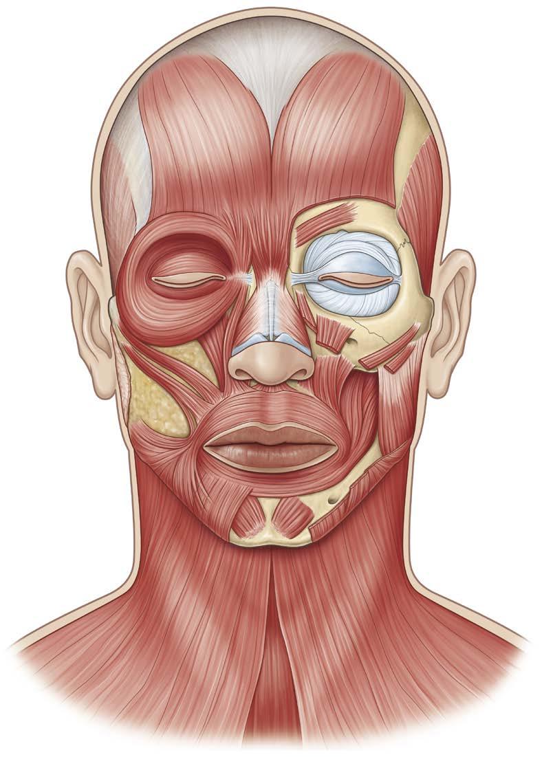 Facial muscles have a unique microarchitecture compared to other skeletal muscles in the body and a complex pattern of innervation. Most human skeletal muscles consist of muscle fibers up to 18 cm in length