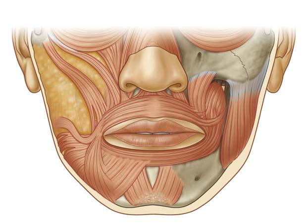 The perioral muscles contributing to lip elevation and smile are of particular interest to patients and surgeons in facial rehabilitation. The main lip elevators are the zygomaticus major, the levator labii superioris, and levator anguli oris (Fig. 1.6).