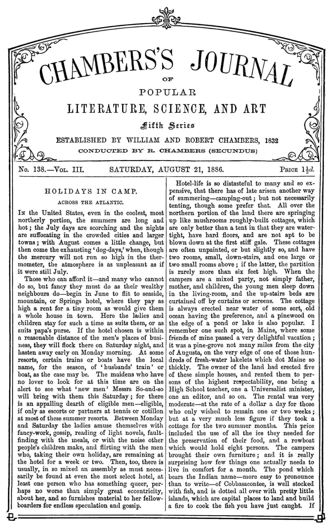 The Project Gutenberg eBook of Chambers's Journal of Popular Literature, Science, and Art, fifth series, no. 138, vol. III, August 21, 1886