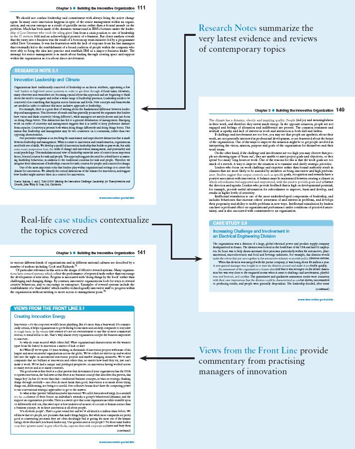 Practical, experience-tested processes, models and tools, including new to this edition ‘Views from the Front Line’, first-person accounts from practicing managers on the challenges they face managing innovation;
