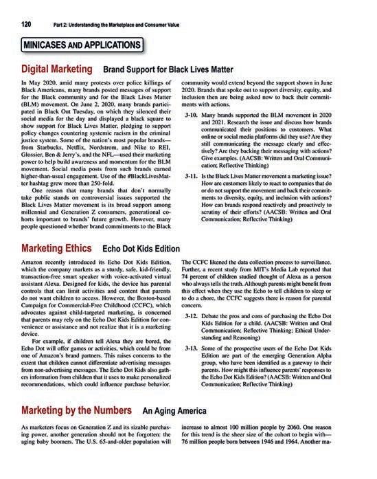 ● Marketing at Work features. Each chapter contains a chapter-opening story and two deeply developed Marketing at Work highlight features that provide in-depth looks at real brand marketing strategies and contemporary marketing issues. For example, students learn how Amazon’s deep-down passion for creating customer value, engagement, and relationships earns customer buying dollars and loyalty in return; how UNIQLO tries to live up to its philosophy “Made for All”; why Peloton’s products fly off the shelves despite their premium prices; and how brands like Wendy’s, Denny’s, Jollibee, and Zoom harness real-time marketing’s power to engage customers in the moment. They see how Instagram has made itself a win-win-win for the company, advertisers, and Instagrammers alike; what makes LinkedIn the place to be for B-to-B marketers; and how upstart brands like Casper Mattress awakened their slumbering industries through direct-to-consumer marketing. They learn that artificial intelligence in marketing is now “a bigger deal than fire and electricity” and how brands ranging from Walmart and Target to beverage maker Keurig Dr Pepper have learned to deal with marketing in this age of disruption. No other text brings marketing to life like the fifteenth edition of Marketing: An Introduction