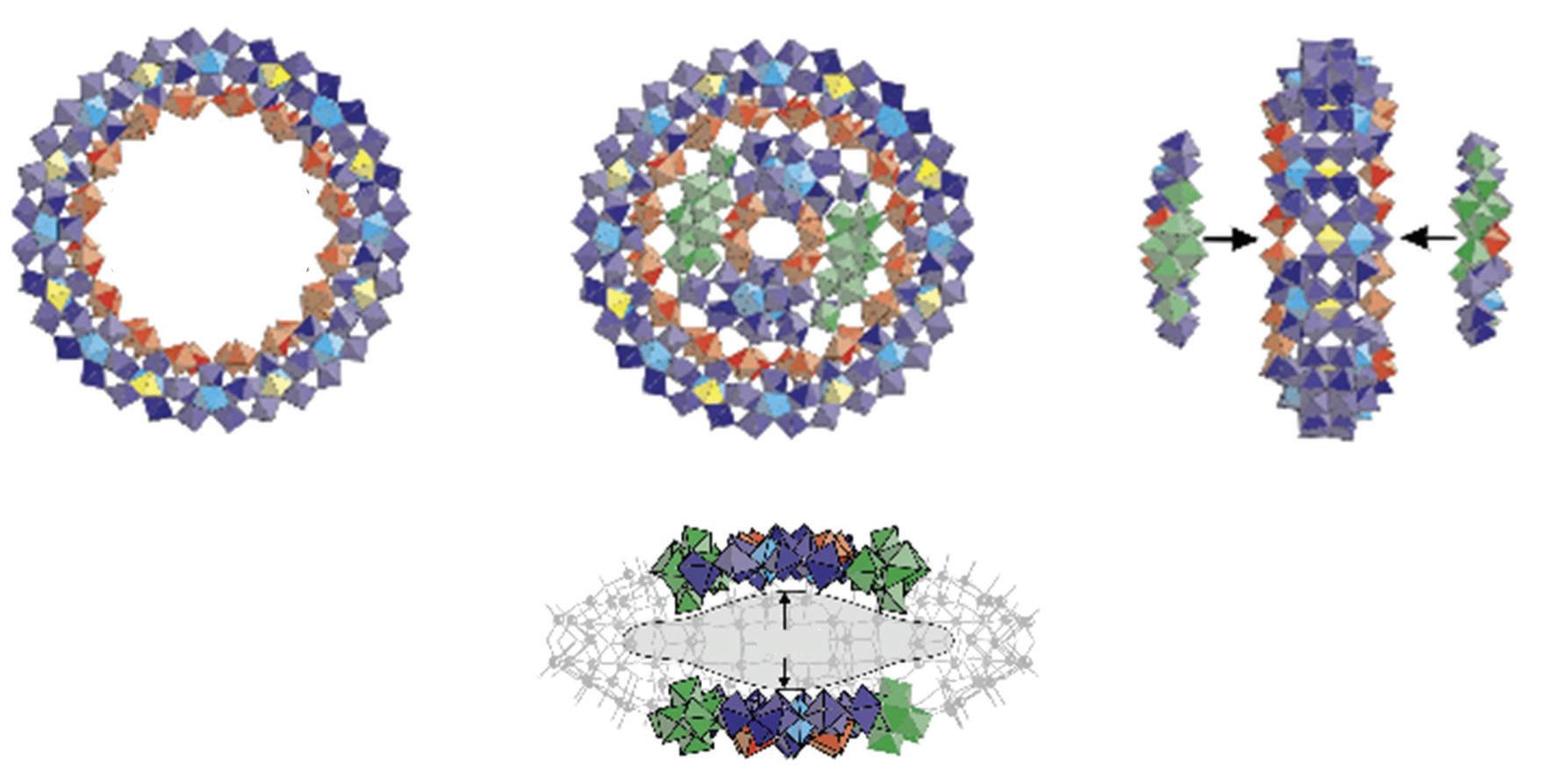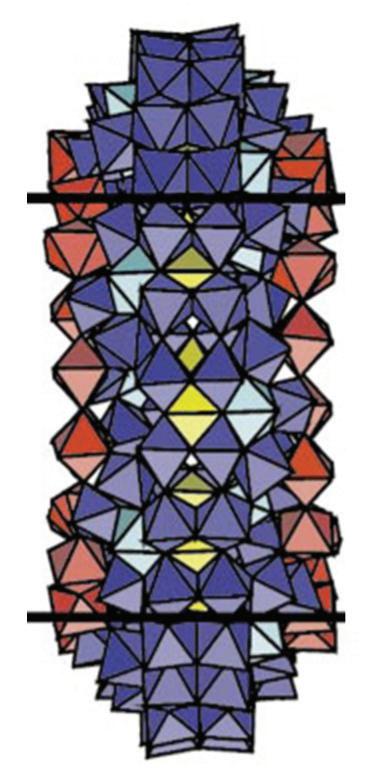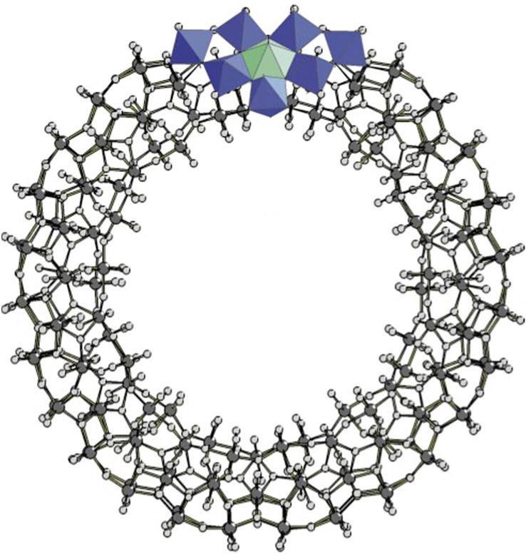 FIGURE 3.40 Scheme of the structure of (Mo368) along th C4 axis. The MoO7 polyhedra are in Turkish blue (reproduced from [101] with permission of Elsevier).