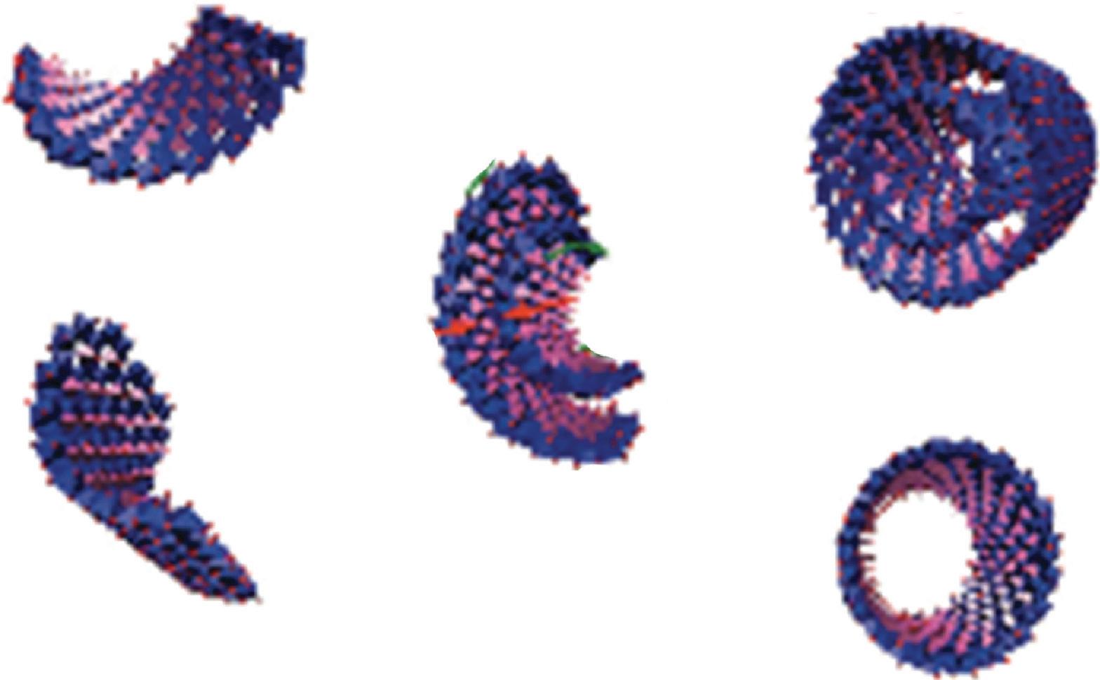 FIGURE 6.29 Schematic sketch for the proto-imogolite transformation into single- or double-wall imogolite nanotubes, depending on the energetic balance between electrostatic interaction and curvature change in the sheet (reproduced with permission from [102] Copyright 2012 American Chemical Society).