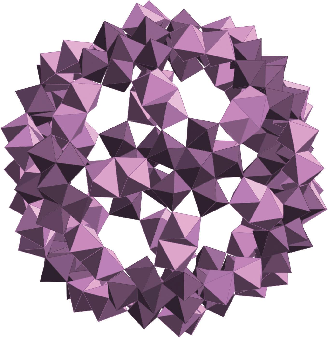 FIGURE 3.37 Scheme of the structure of [Mo132O372(CH3COO)30(H2O)72]42–, including 12 (Mo6) units (dark gray) linked by (Mo2) bridges (light gray).