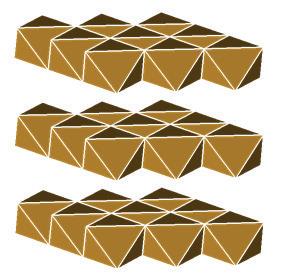 FIGURE 1.7 Scheme of adsorption sites for AsIII on nanoparticles 6 nm in diameter based on structural information deduced from X-ray diffraction and As K-edge XAS analyses. (a) Idealized structure of {111} faces of maghemite, γ-Fe2O3 (octahedra and tetrahedra are FeO6 and FeO4, respectively). (b) Nanoparticle exhibiting FeIII vacancies. (c) Filling of the most reactive sites by arsenic at low coverage rate. (d) Adsorption on lattice positions at higher surface coverage allowing a decrease of surface energy.