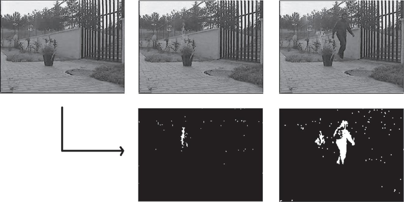 Inbackgroundsubtractionmethods,itisassumedthatthecameraisstationary.In Fig.2.2,abackgroundsubtraction-basedmotiondetection
