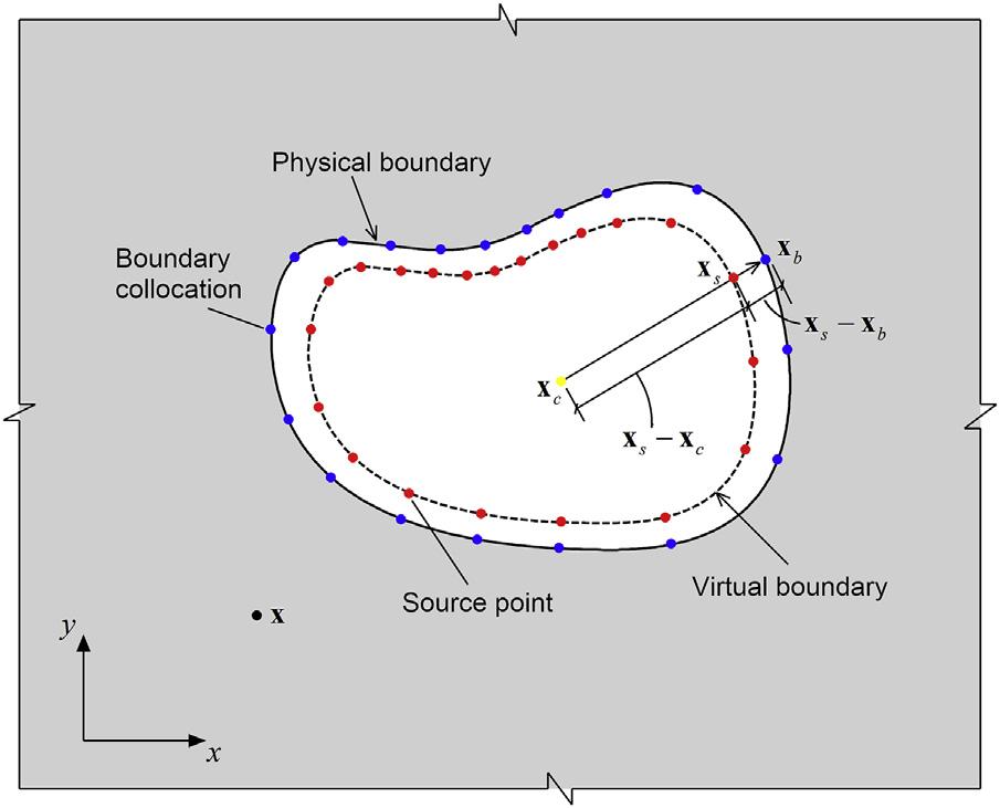 Theuniqueexistenceofapproximatesolutionsfor Eqs.(1.31)and(1.33) of theform (1.37) hasbeenestablishedtheoretically.However,thelocationsof sourcepoints fxsk gN k ¼1 outsidethecomputingdomaincannotbeexplicitly determined.Inpracticalcomputation,wecanusuallyemploythefollowing relationtogeneratethesourcepoint: