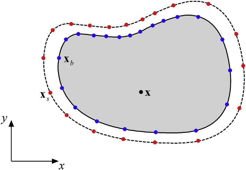 ðxÞz X N j¼1 aj G ðx; xsj Þ¼ Ga; x ˛ U; xsj ;U (1.17) where N isthenumberofsourcepoints fxsj gN j¼1 locatedoutsidethedomain, G*(x, xsj)centeredat xsj isthefundamentalsolutionofthepartialdifferential Eq.(1.1) inthespatialcoordinate x ¼ (x, y) [43,44], aj isthecoefficientfor G*(x, xsj)thatisyettobedetermined,and G ¼½ G ðx; xs1 Þ G ðx; xsN Þ (1.18)