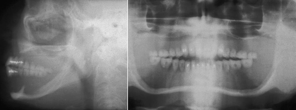 Loss of bone in the maxilla or mandible is not limited to alveolar bone; portions of the basal bone also may be resorbed, especially in the posterior aspect of the mandible in which severe resorption may result in catastrophic bone loss.35 The contents of the mandibular canal or mental foramen eventually become dehiscent and serve as part of the support area of the prosthesis. As a result, acute pain and transient to permanent nerve impairment of the areas supplied by the mandibular nerve are possible. The body of the mandible is also at increased risk of pathologic fracture, even under very low impact forces. The mandibular fracture causes the jaw to shift to one side and makes stabilization and an esthetic result most difficult to obtain during treatment of the fracture.