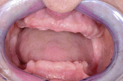 • Fig. 1.17 Maxillary and Mandibular edentulous arches depicting irregular bone resorption with varying degrees of quality soft tissue (i.e. attached tissue).