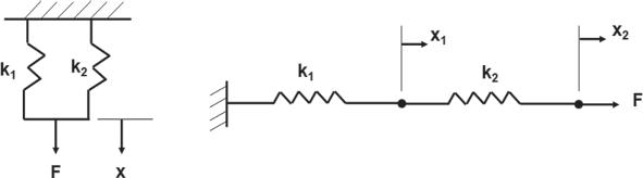 astheforceinboththespringsremainsthesame.Theoveralldeflection, x, isthesumoftheindividualdeflection x1 and x2 ofeachspring, x1 + x2 = x
