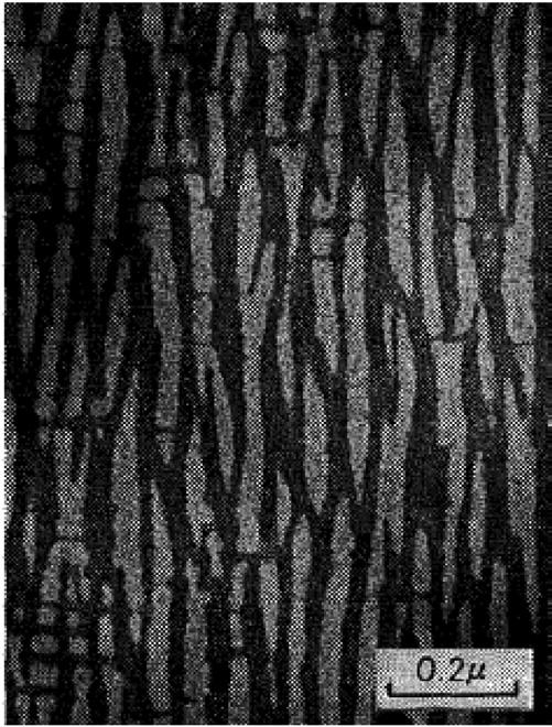 Fig. 1.5 TEM of the microstructure that forms in an alnico magnet when the alloy is annealed in the presence of a magnetic field (Iwama and Takeuchi 1974).