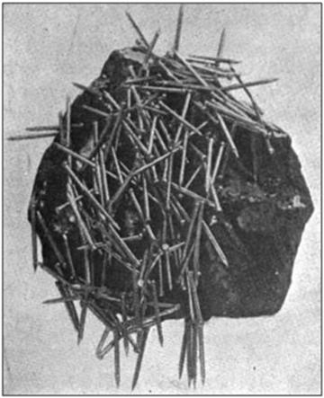 FIG. 1.2 A demonstration of the ability of loadstone to attract iron objects (Annet 1921).