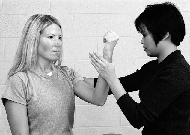 Ms. Bates, I need to measure how much strength you have in the muscles that straighten your elbow. This information will tell me how much your strength is improving and will give me an idea of what changes we need to make in your plan of care. At a certain point during the test, I will push against your arm and will ask you to try to keep me from bending your elbow. When I do that, I want you to try as hard as you can to keep me from bending your elbow. I will need you to lie on this table on your back so that I can test your muscles.